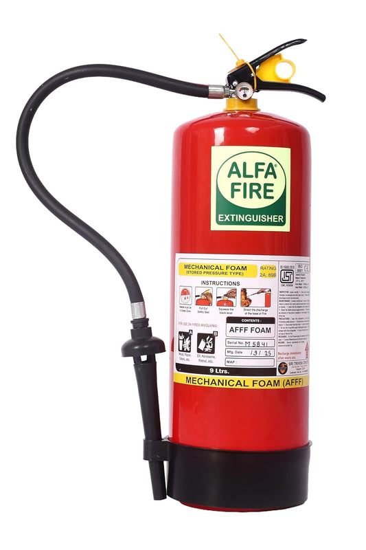 Alfa Fire 9L AFFF Foam Fire Extinguisher – 3-Year Content Expiry – Refillable – BIS Certified – Mild Steel Body – Class A & B Fires | Petrol, Oil, Wood, Plastic Fire Safety